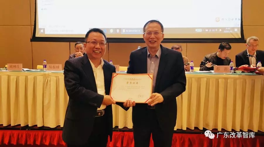 廣東省體制改革研究會(huì)名譽(yù)會(huì)長(zhǎng)、省人大原副主任陳堅(jiān),名譽(yù)會(huì)長(zhǎng)、原廣東省體改委主任易振球出席第八屆會(huì)員代表大會(huì),為第八屆理事會(huì)選舉的會(huì)長(zhǎng)、執(zhí)行會(huì)長(zhǎng)、副會(huì)長(zhǎng)、秘書(shū)長(zhǎng)、監(jiān)事頒發(fā)證書(shū)。周林生會(huì)長(zhǎng)為高級(jí)顧問(wèn)頒發(fā)了聘書(shū)。