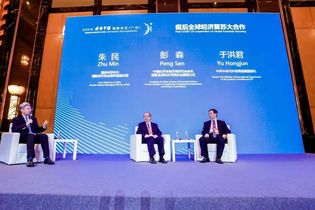 11月20日,2020年“讀懂中國(guó)”國(guó)際會(huì)議(廣州)在廣州開幕。習(xí)近平主席專門發(fā)來(lái)賀信。中共中央政治局委員、中宣部部長(zhǎng)黃坤明在京通過(guò)視頻連線出席開幕式,宣讀習(xí)近平主席賀信并發(fā)表演講。中共中央政治局委員、廣東省委書記李希出席會(huì)議并作主旨演講。彭森會(huì)長(zhǎng)出席在21日舉行的2020“讀懂中國(guó)”國(guó)際會(huì)議(廣州)以“疫后全球經(jīng)濟(jì)服務(wù)大合作”為主題的午餐專題對(duì)話會(huì)并發(fā)表演講。