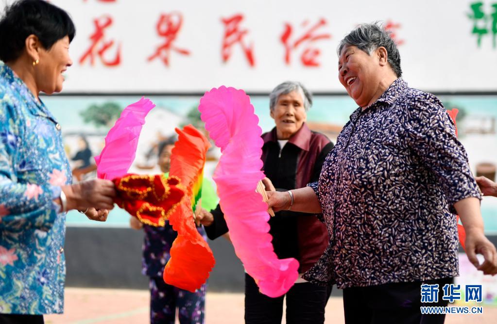 居住在河北省灤州市灤城街道花果莊村福興老年公寓的老人們?cè)谂ぱ砀瑁?021年6月1日攝)。新華社記者 牟宇 攝