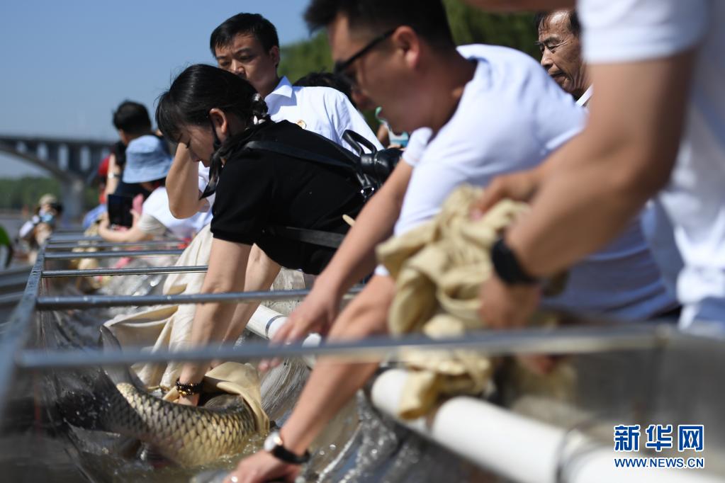 2021年6月6日,市民在湖南長沙橘子洲公園參與放魚活動(dòng)。新華社記者 薛宇舸 攝
