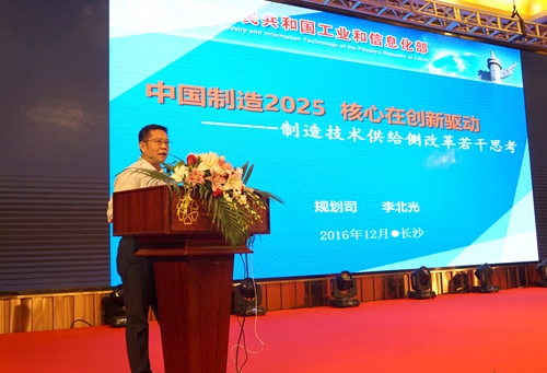 工信部規(guī)劃司副司長李北光演講的題目是,《中國制造2025核心在于創(chuàng)新驅(qū)動》。李北光指出,2010年我國制造業(yè)增加值達到1.9萬億美元,首次超過美國,成為全球第一制造大國,保持至今。但是我們大而不強,主要問題是創(chuàng)新能力不強。創(chuàng)新背后迫切需要全面深化科技體制、工業(yè)體制和整個經(jīng)濟體制、社會體制改革。在最新一輪的工業(yè)革命背景下,中國制造能不能化挑戰(zhàn)為機遇,成為我們必須思考和必須面對的問題。2015年5月,國務(wù)院發(fā)布《中國制造2025》,提出在保持中國制造規(guī)模優(yōu)勢的基礎(chǔ)上,保持中國制造完整的生產(chǎn)體系、制造體系基礎(chǔ)上,以智能制造為主攻方向,推動中國制造全方位智能化轉(zhuǎn)型,用信息技術(shù)改造傳統(tǒng)企業(yè),推動中國制造由中低端邁向中高端,由大轉(zhuǎn)強。