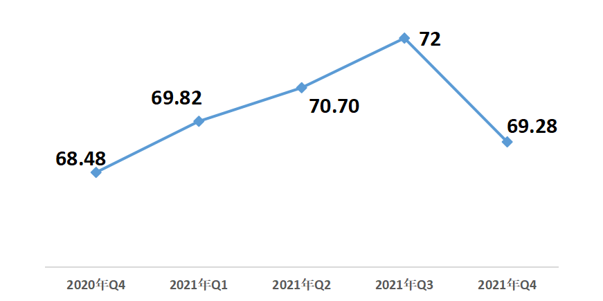 1月29日,中國(guó)經(jīng)濟(jì)體制改革研究會(huì)在京發(fā)布《2021年第四季度改革熱度第三方評(píng)估報(bào)告》。報(bào)告顯示,2021年第四季度改革熱度指數(shù)為69.28,同比增長(zhǎng)0.8;與上一季度相比,減少2.72,降幅3.78%。