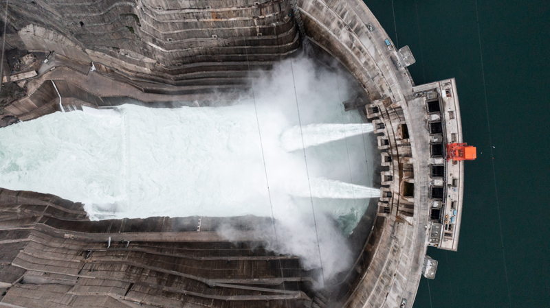 白鶴灘水電站一景(5月19日攝,無人機照片)。新華社記者 胡超 攝