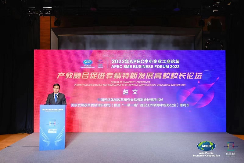 我會常務副會長兼秘書長趙艾應邀出席于2022年12月22日下午在京舉辦的2022APEC中小企業(yè)工商論壇并在產教融合促進專精特新發(fā)展高校校長論壇上發(fā)表致辭演講。