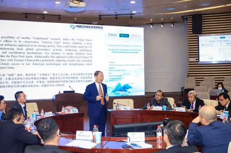 2024年12月2日,我會(huì)常務(wù)副會(huì)長兼秘書長趙艾應(yīng)邀出席在廈門舉辦的以“推進(jìn)高質(zhì)量共建‘一帶一路’:機(jī)制建設(shè)與創(chuàng)新驅(qū)動(dòng)發(fā)展”為主題的2024年度“一帶一路”人才發(fā)展項(xiàng)目高級研修班,并在開班儀式上以“新時(shí)代新征程 共建‘一帶一路’新作為”為題授課。